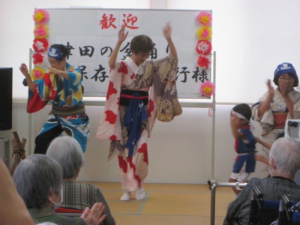 HOME > グループホーム えんじゅ > お知らせ お知らせlogin 前ヘ 1 2 3 4 5 6 7 8 9 10 11 次ヘ 行事予定・報告津田の盆踊り 9月20日、「津田の盆踊り保存会」の皆様にお越し頂きました。徳島県指定無形民俗文化財「津田の盆踊り(ぼにおどり)」、今年は室内での見学となりましたが迫力満点の踊りを楽しまさせて頂きました。徳島の伝統文化に触れ貴重な時間となりました。 (令和7年9月、津田の盆踊り保存会の皆様、ありがとうございました。) お知らせすだち 南側の庭に植わっているすだちの木、今年はたくさんの実をつけました。散歩のたびに実の大きさを確認していましたが、先日ようやく収穫することができました。一本の木にどれくらいの実がなるのかわかりませんが、個数を数えたところ180個の実が取れていました。早速、夕食の焼き魚に絞りましたが思っていた以上に果汁と風味もしっかりとしていておいしかったです。徳島県人としてはこれからの秋の味覚にはすだちが欠かせないので楽しみです。 (令和7年9月) 行事予定・報告令和7年度 敬老会 9月12日に敬老会を開催し、皆様のご長寿をお祝いさせて頂きました。今年は2名の方が節目を迎えられています。最高齢の方は96歳でした。 敬老の日おめでとうございます。皆様のご健康とご長寿をお祝い申し上げるとともに、これからの毎日がより豊かで実り多きものとなりますようお祈りいたします。(令和7年9月) お知らせやまももジュース 庭のやまももがたくさんの実を付けたのでシロップ漬けにしました。水で割り清涼感いっぱいのジュースの完成です。毎朝の体操の後に飲んでいますがとても好評です。 (令和7年7月) お知らせつばめの飛来(今年2回目)。 つばめのヒナが無事巣立ちってからあまり日が経たないうちに、新しいつばめのペアが姿を見せるようになりました。そして今では元気なヒナ達が巣から顔を出しています。来所される際にはぜひ愛くるしいつばめをご覧ください。 (令和7年6月28日 撮影) 行事予定・報告花見に行って来ました。 8日と9日に北島町内の三ツ合公園に花見に行って来ました。両日ともに好天に恵まれて満開の桜を気持ちよく見物することができました。 (令和7年4月) お知らせ桜が咲き始めました。 最近の暖かい陽気につられ中庭の桜が咲き始めました。10輪ほどの花が確認できました。昨年より3日早い開花となります。存分に桜を楽しみたいと思います。 (令和7年3月24日) 行事予定・報告初詣に行ってきました。 少し遅くなりましたが、元気に大麻比古神社へ初詣に行ってきました。ユニット毎に分かれて行きましたが、どちらも暖かい日に恵まれて気持ちよくお参りすることができました。 (令和7年2月) 行事予定・報告第54回 北島町文化祭に出展しています。 北島町文化祭(26~27日)に出展しています。今年も楽しい作品に仕上がっています。(令和6年10月) 行事予定・報告津田の盆踊り 9月14日、「津田の盆踊り保存会」の皆様をお招きして津田の盆踊り(ぼにおどり)を披露して頂きました。ご存知の方も多いと思いますが、津田の盆踊りは徳島県の指定無形民俗文化財に指定されています。なかなか民族文化や芸能に触れることが少ない中、貴重な時間を過ごさせて頂きました。 (津田の盆踊り保存会の皆様、ありがとうございました。令和6年9月) 前ヘ 1 2 3 4 5 6 7 8 9 10 11 次ヘ