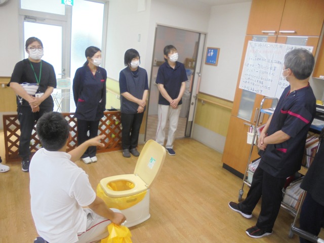 HOME > グループホーム 向喜来の家 > お知らせ お知らせ 医療法人悠穣会 芳川病院 行事予定・報告令和7年9月8日 水害対策訓練 当施設では、入居者様と共に水害を想定した避難訓練を行いました。実際にヘルメットを着用し、持ち出し品や簡易トイレの使用方法も確認しました。新人職員へのヘルメット着用指導も今後の課題として明確になりました。内線や災害対策本部との連絡が困難な状況を想定し、代替連絡手段や指揮系統の見直しも検討しました。今後も安心・安全な支援体制づくりを進めてまいります。