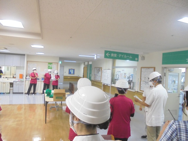 医療法人悠穣会 芳川病院 行事予定・報告令和7年度9月8日 水害対策訓練実施 当院では、職員で水害を想定した防災訓練を実施しました。地震発生から津波避難までをアクションカードに沿って確認し、実際にヘルメットを着用して訓練に臨みました。簡易トイレの使用方法や持ち出し品の確認も行い、災害時の対応力向上を図りました。防災体制の再確認を通じて、職員一人ひとりの意識を高める良い機会となりました。今後も継続的に訓練を行い、安心・安全な医療体制を目指してまいります。