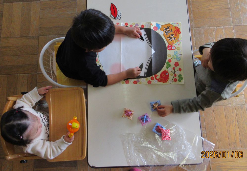 HOME > わかば保育所 > お知らせ お知らせ 医療法人悠穣会 芳川病院 行事予定・報告令和8年 1月 正月遊び 今年もよろしくお願いします。恒例の正月遊びをしました。今年は福笑いと駒回しで、1歳の子にも同席してもらいました。福笑いで大盛り上がりで、何度も楽しんだ後はまじめに顔のパーツを並べたいと目隠し無しで取り組んでいます。顔を描くようになる年頃らしい遊び方だと思いました。